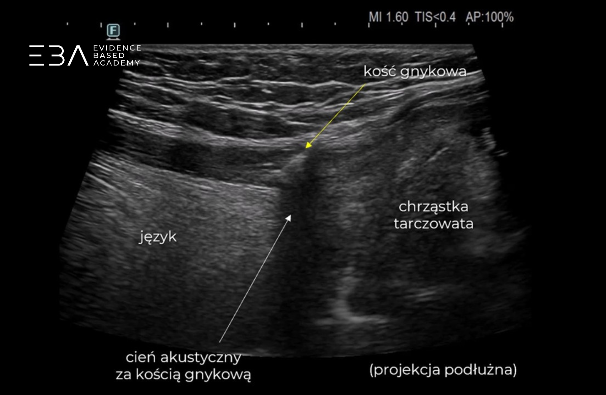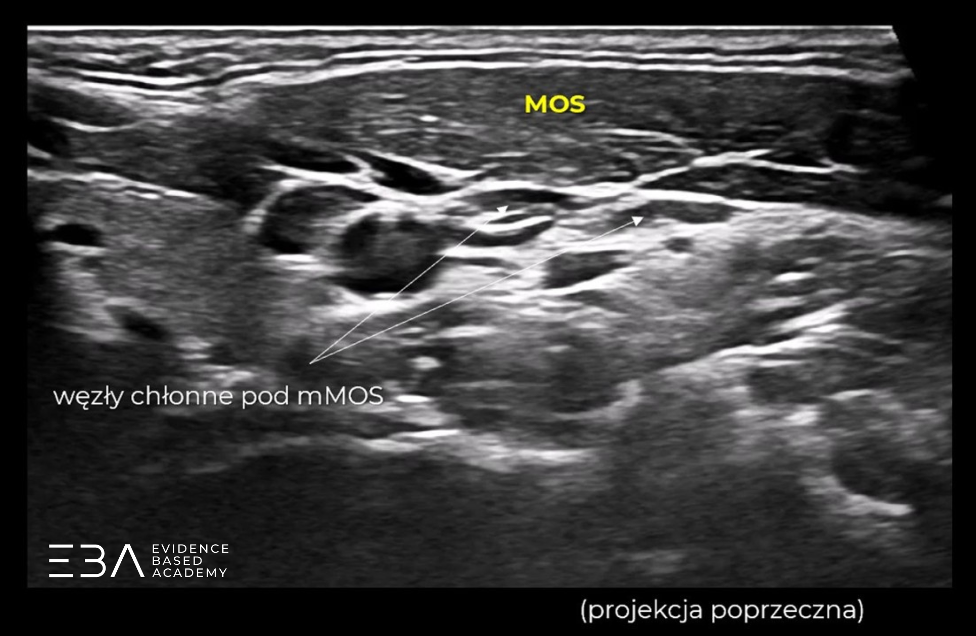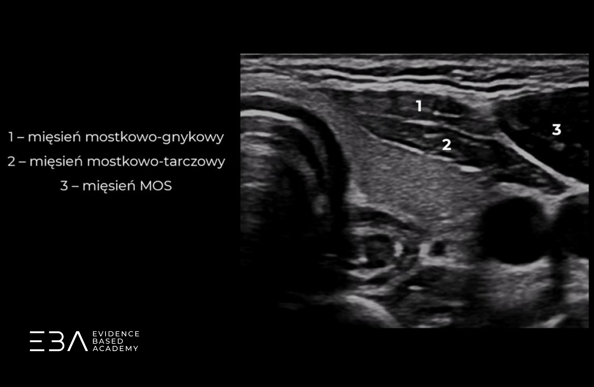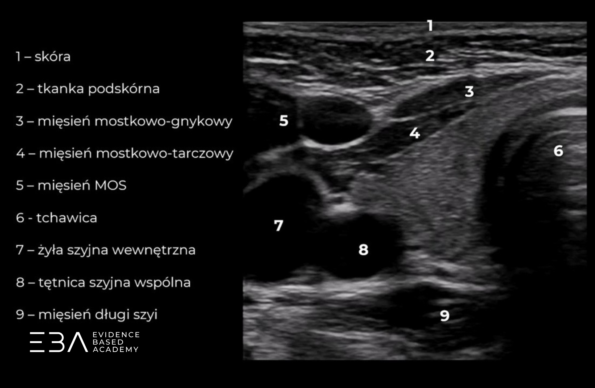 Struktury, które musimy zidentyfikować i ocenić, to: język, ślinianki podjęzykowe, kość gnykowa, mięsień mostkowo-obojczykowo-sutkowy (MOS) oraz grasica. Jest to istotna część badania tarczycy, ponieważ pozwala nam na wykrycie potencjalnych wad rozwojowych oraz wariantów anatomicznych związanych z rozwojem tarczycy i innych narządów szyi.