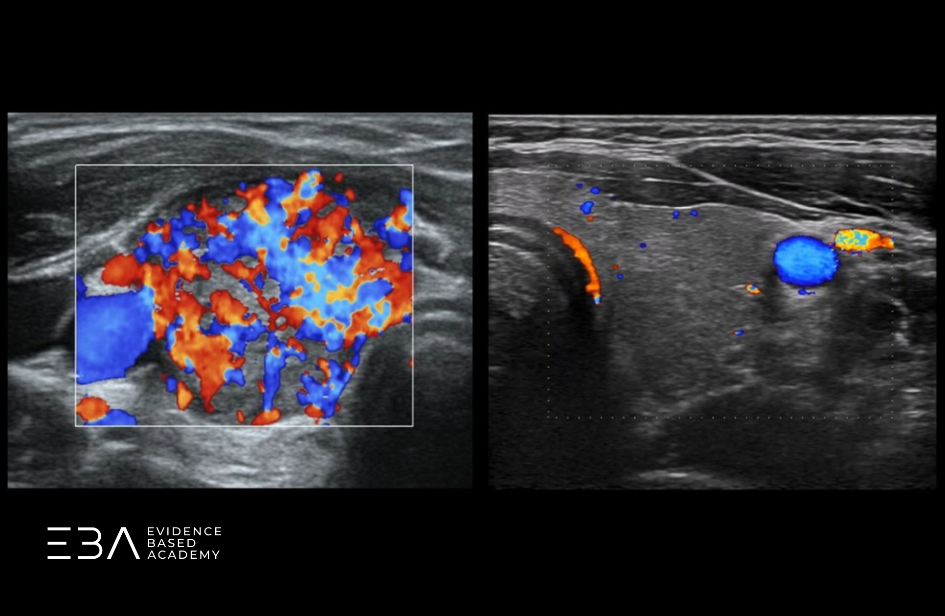 Dla porównania – u pacjentów z zapaleniem autoimmunizacyjnym tarczycy zwykle dochodzi do wzmożenia przepływu w miąższu. Unaczynienie jest wówczas bogate i widoczne we wszystkich częściach płata.